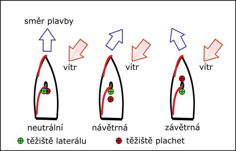 Neutrální jachta pluje rovně, návětrná se stáčí proti větru a závětrná po větru.