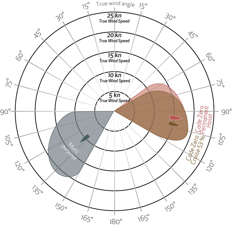 Na vítr zadních směrů by byl nejlepší asymetrický spinaker. Bok a předobok ale nevykryje. Cruisingový jachtař, který chce více plachtit, se musí poohlédnout jinde. Jména takové plachty mohou být různá. Řekněme, že jde o Code plachty. Jsou určitým přechodem mezi genami a asymetrickými spinakery. Jejich použití se různí podle konkrétního typu. Některé jsou použitelné za slabého větru na stoupačku, jiné s přehledem zvládnou vítr ze směru až 150°skutečného větru. Jde přitom o plachty rolovací, snadno se s nimi pracuje.