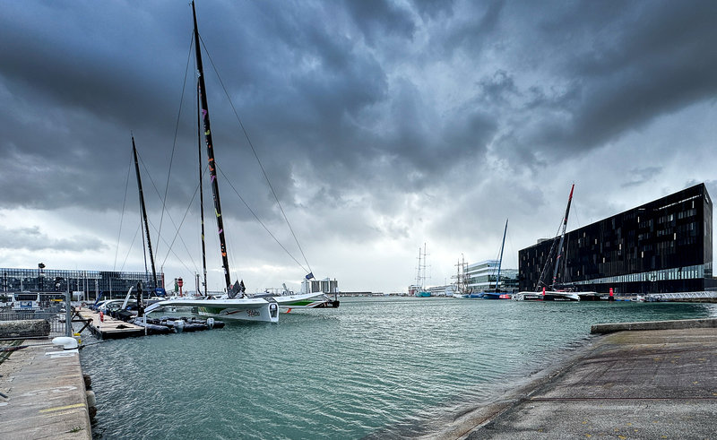 Jsme v Le Havre v místě startu Transat Cafe L´Or. Přešla fronta, tlaková níže, déšť, vítr v poryvech až 50 uzlů. Milan Koláček v sobotu startuje s Pierrem Brasseurem transatlantický závod Transat Cafe L´Or. Nyní probíhá na lodi security kontrola.