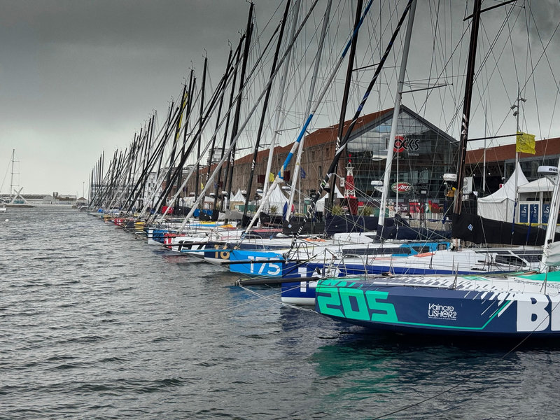 Počasí, že by psa nevyhnal. Husté nízké mraky, leje jako z konve. Kvůli silnému větru je zavřena race village. Přípravy na závod však pokračují. Včera před půlnocí v podobném počasí něco montoval osamělý maník ve žluťákách na přídi Ultim trimaranu Sodebo.